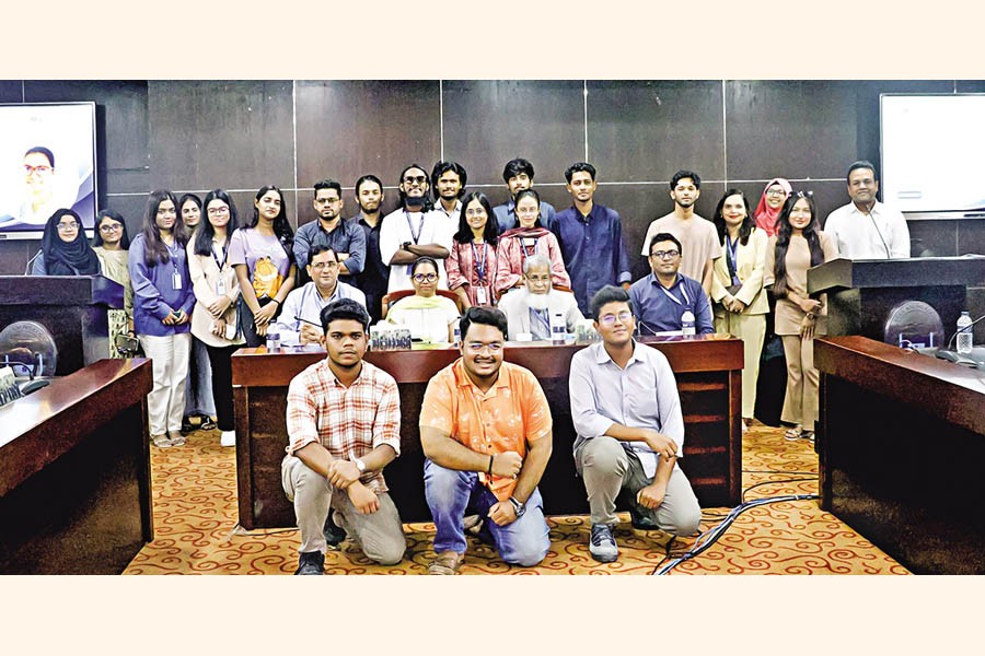 NSU Media, Communication and Journalism (MCJ) programme assistant professor Dr Samiksha Koirala, associate professor Dr Harisur Rahman, Country Representative for Bangladesh of Internews Shameem Ara Sheuli and participants attend a seminar on "Uncovering Truth in a Digital Age: Navigating the New Frontier of Journalism - A Gender Perspective" on the North South University (NSU) campus in the city on Wednesday