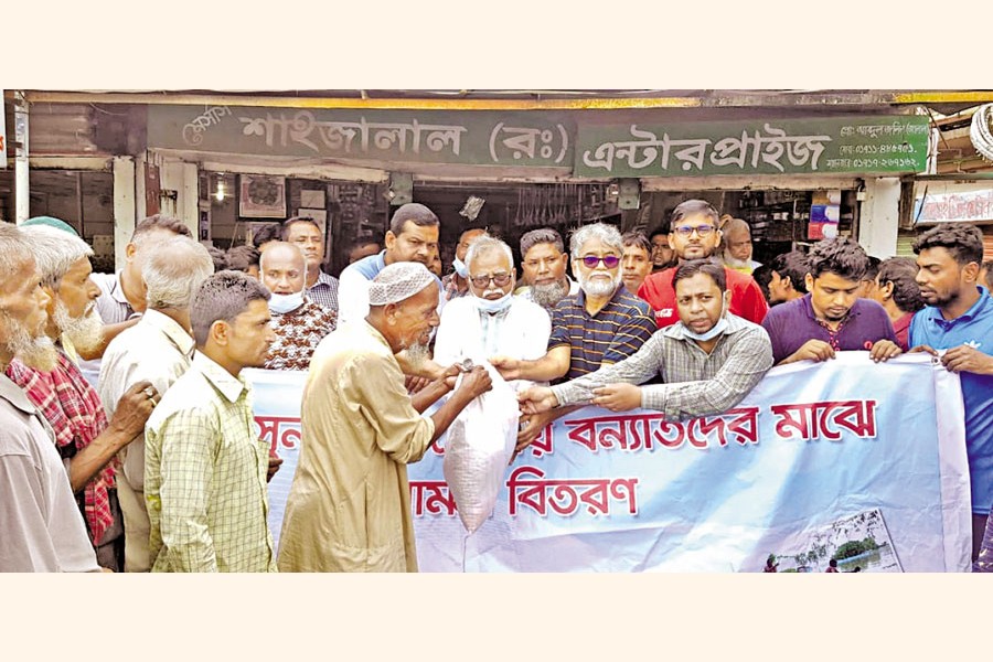 A relief distribution programme for flood affected people of Sylhet (Bishonath, Rampasha, Amtole) and Sunamganj (Mollapara, Monpura, Pondha) districts organised by Union Insurance Company Ltd was held recently. Chief Executive Officer Talukder Md Zakaria Hossain was present in the programme.