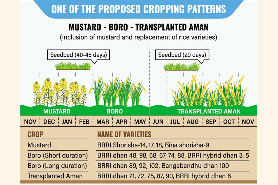 Bangladesh is going to appropriate new cropping patterns for its agro-ecological zones to boost rice output by 3.3-million tonnes and cut edible-oil imports by 50 per cent within 2025.