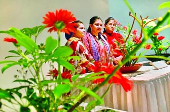Visitors at the Ikebana exhibition