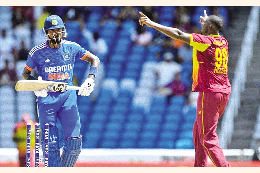 Skipper Hardik Pandya (19), Axar Patel (13) and Singh (12) all made useful contributions but struggled to force the pace on a slow pitch at the Brian Lara Stadium.