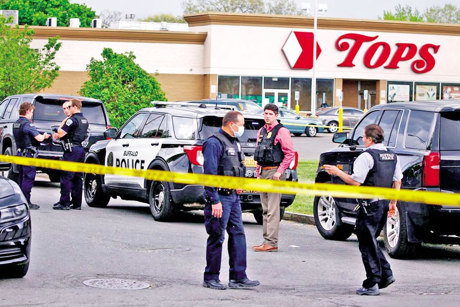 NEW YORK, May 15 (Reuters): An 18-year-old white gunman shot 10 people to death and wounded three on Saturday at a grocery store in a Black neighborhood of upstate New York, before surrendering after what authorities called an act of "racially motivated violent extremism."