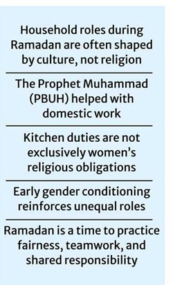 Some families, however, adopt different models. There are households where fathers prepare suhoor, sons wash dishes after iftaar, and responsibilities are rotated among family members.
