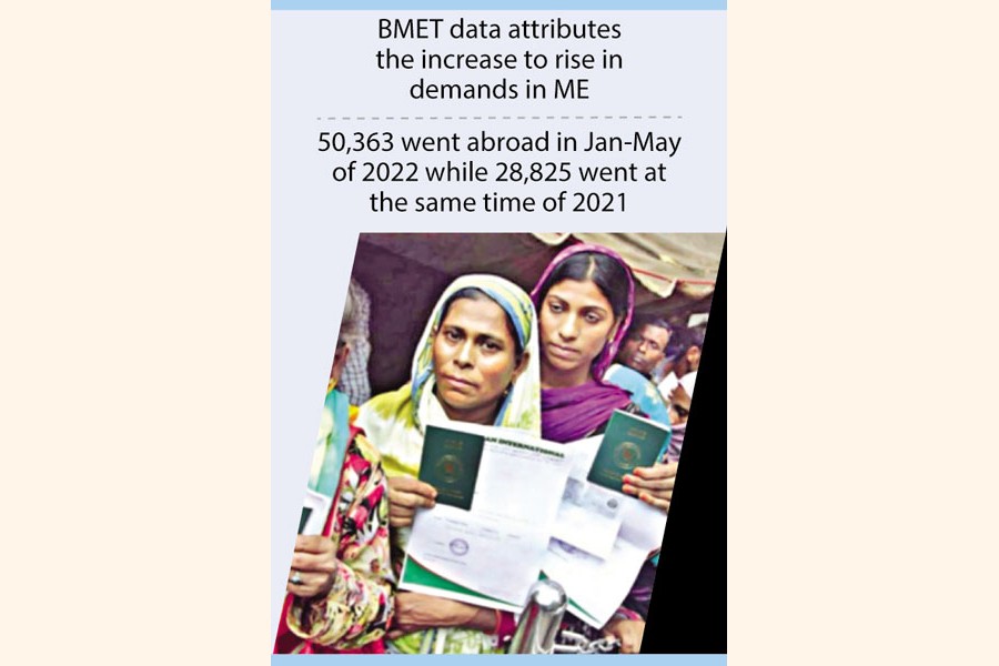 Data released by the Bureau of Manpower Employment and Training (BMET) showed as many as 50,363 women workers went to different job destination countries during the January-May period of the current calendar year.