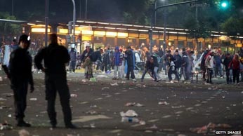 Argentine police have clashed with rioters in the capital Buenos Aires after the country's defeat to Germany in the football World Cup final. Thousands of people had earlier gathered at the city's Obelisk monument to party despite the result. However, later in the evening, the scene turned violent as dozens of youths began throwing rocks at police and damaging store fronts. At least 50 people were detained and 15 police officers were reported injured. The mood among the crowd that had gathered after the match was initially good-natured, the BBC's Wyre Davies reports from Buenos Aires, according to BBC.