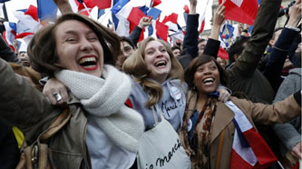 World heralds Macron victory with V signs