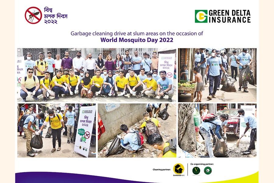 On the occasion of World Mosquito Day 2022, Green Delta Insurance has initiated and completed an awareness campaign featuring garbage cleaning drive for underprivileged community at Korail slum in Dhaka recently. Volunteer for Bangladesh and Manobotar Jonno Amra Foundation were co-organising partners of the campaign and cleaning drive.