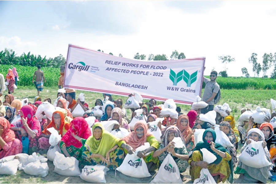 W&W Grains Bangladesh engaged in flood relief activities with distributing packages containing food and medicine among the flood-affected people at different locations of Dewanganj Upazila, Jamalpur recently.