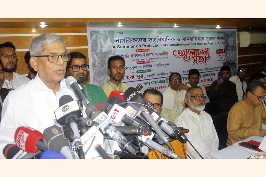Mirza Fakhrul Islam Alamgir came up with the remarks while speaking as the chief guest at a discussion titled 'Constitutional and human rights protection of the citizens' organised by Gono Adhikar Parishad (Noor) at Dhaka Reporters Unity (DRU) in the city.