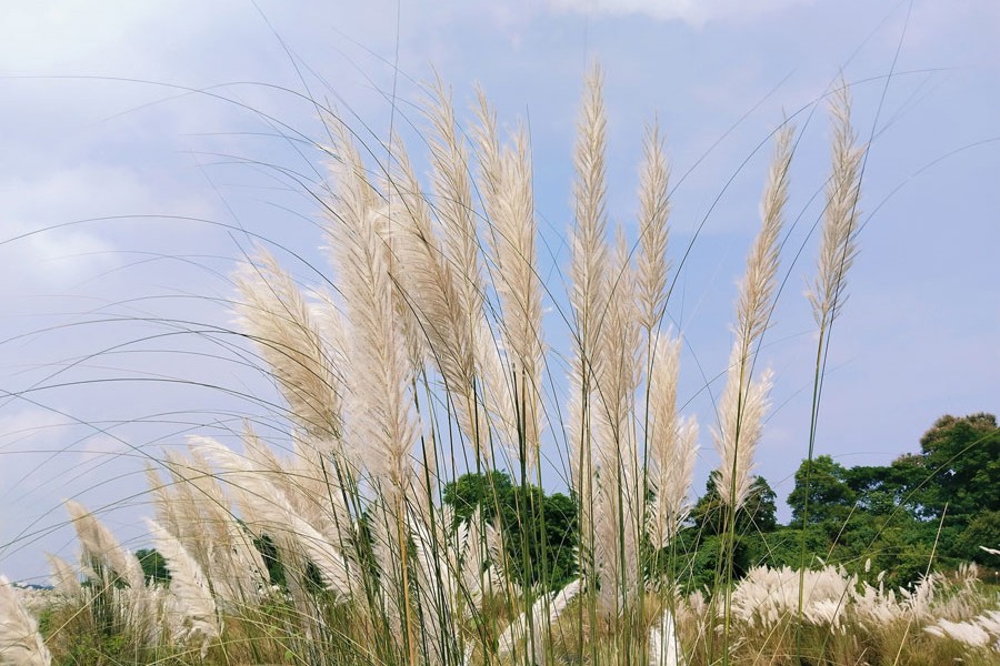 Catkin flowers, locally known as Kashful, are in full bloom, which is a common sight during the autumn in Bangladesh. The photo was taken from the bank of the Meghna River in Ashuganj upazila of Brahmanbaria district — Focus Bangla