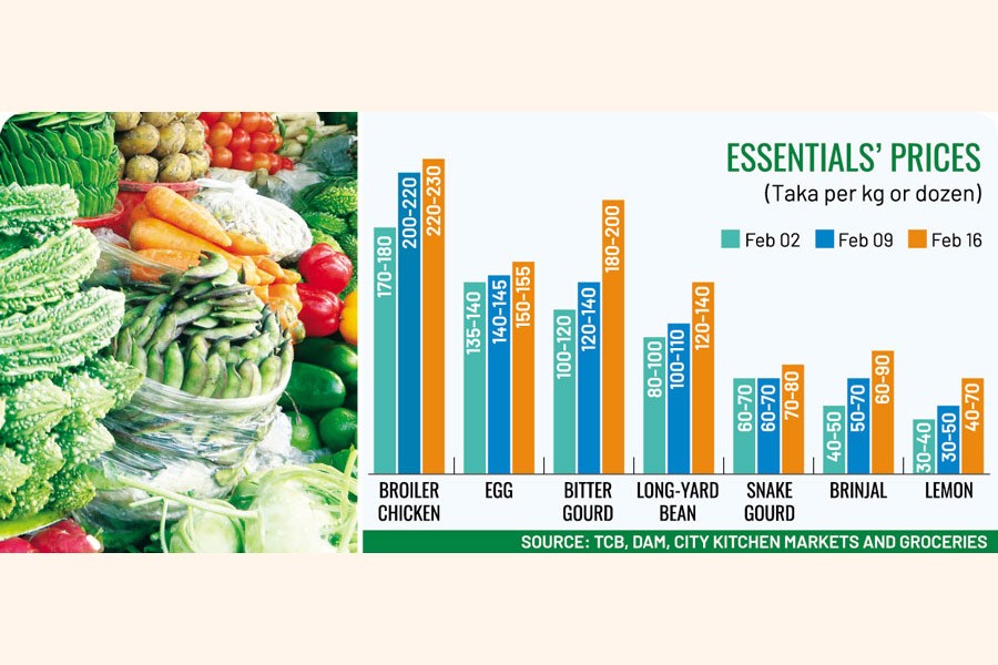 Consumers Association of Bangladesh (CAB) Vice-president SM Nazer Hossain said prices of broiler chickens, cultured fishes, and farm eggs increased this month to a record level, pinching hurt the commoners.