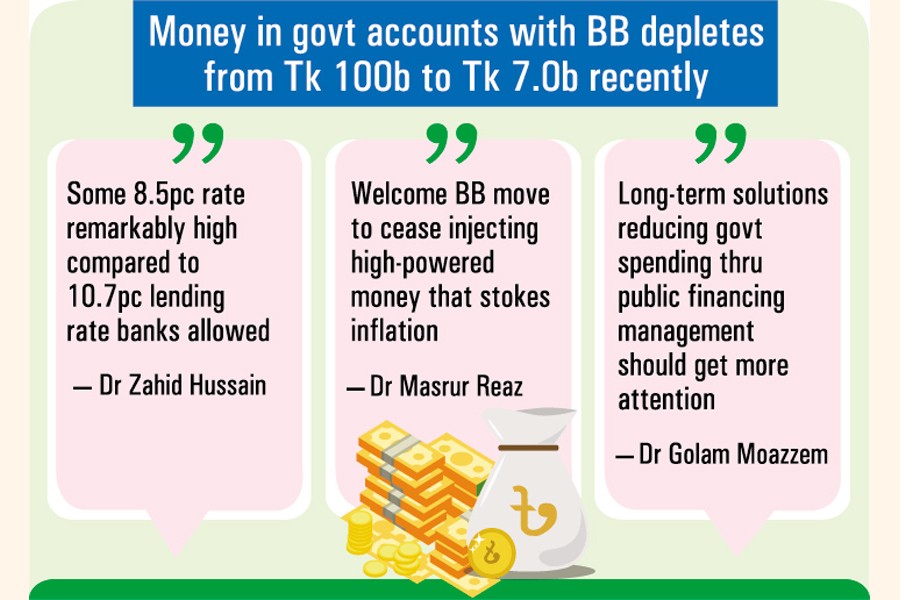 Former lead economist at World Bank's Dhaka office Dr Zahid Hussain says short-term instruments tend to be used to influence market rates. The 8.5-percent rate, however, is remarkably high compared to the 10.7-percent lending rate banks are now allowed to charge.