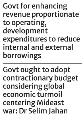 "The government must adopt a contractionary budget this year considering the global economic turmoil centering Middle-east war," he says to underscore the need for austerity in taking development projects.