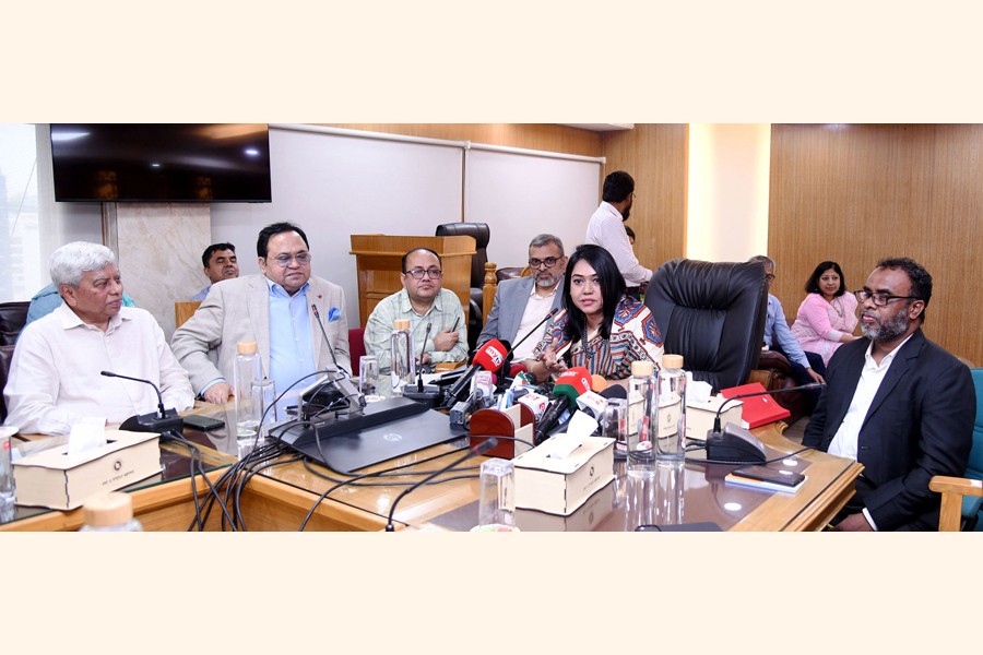Information and Broadcasting Secretary Mahbuba Farzana presiding over a view-exchange meeting on proper broadcasting of government directives, news, content, advertisements, and programmes at the Secretariat in the capital on Monday. — PID