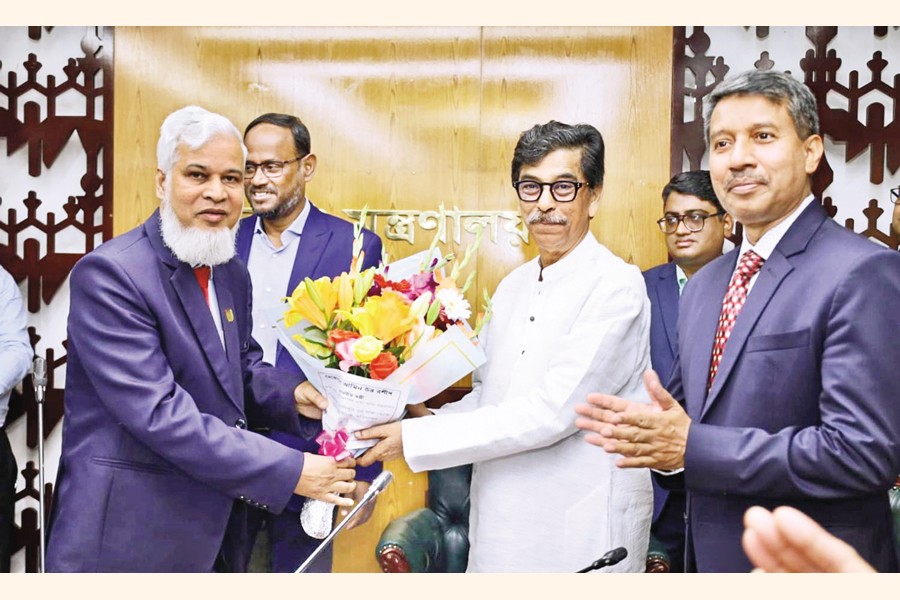 Director General of Bangladesh Agricultural Research Institute (BARI) Dr Muhammad Ataur Rahman greeted Agriculture Minister Mohammad Amin Ur Rashid and State Minister for Agriculture Sultan Salauddin Tuku at an event in the city on Sunday. Secretary of the Ministry of Agriculture Dr Mohammad Emdad Ullah Mian was also present on the occasion.