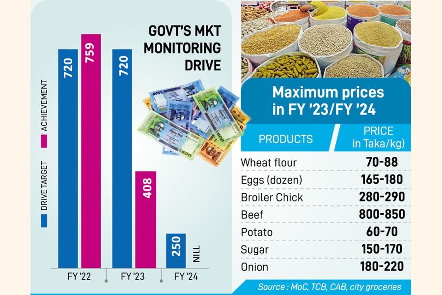 In the financial year 2022-23 (July 2022-June 2023), only 408 market drives were conducted, marking a 46 per cent drop compared to the 759 drives carried out in the previous year, according to the government's annual performance agreement (APA) documents.