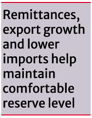 "Higher inflows of remittances along with steady growth in export earnings have helped boost the country's forex reserves," the central banker explained.