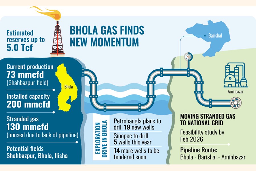Sources say the government has fielded agencies to carry out feasibility study on pipeline setting to carry the stranded Bhola gas to mainland to utilise the island's gas to meet the country's mounting fuel demand.