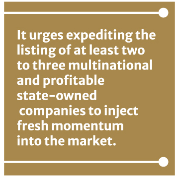It urged the government to ensure effective coordination among relevant institutions from day one and expedite the listing of at least two to three multinational and profitable state-owned companies to inject fresh momentum into the market and restore investor confidence.