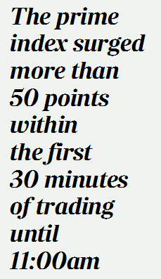 The prime index surged more than 50 points within the first 30 minutes of trading until