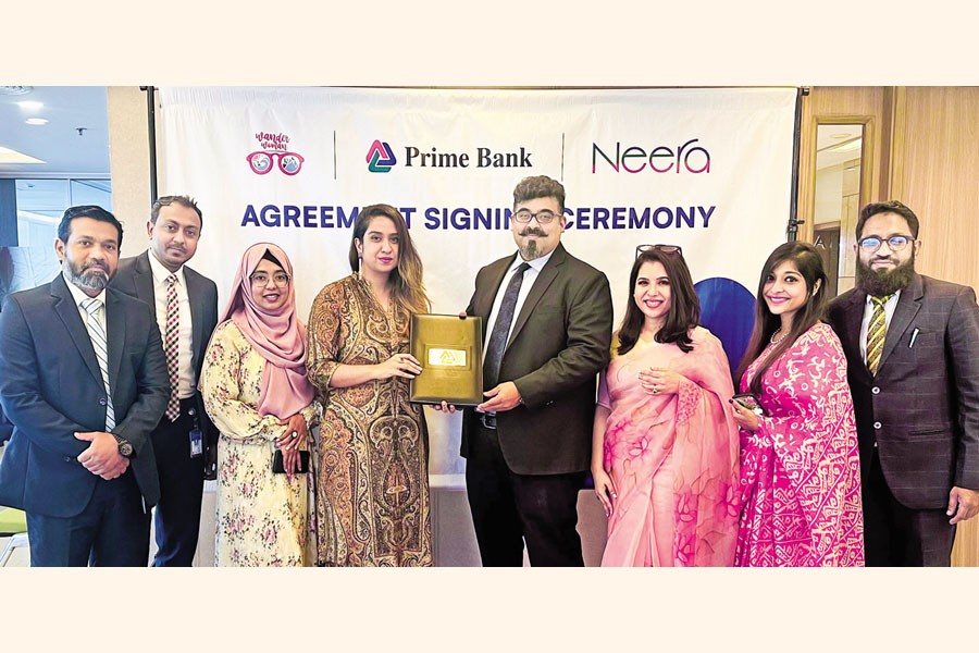 Women-focused banking initiative Prime Bank Neera and all-female travel platform Wander Woman signed an agreement at Prime Bank headquarters recently. Nazeem A. Choudhury, deputy managing director of Prime Bank, and Sabira Mehrin Saba, founder & CEO of Wander Woman, signed the agreement. This collaboration offers Neera customers discounts on guided tours, service charges, Wander Woman merchandise and hotel bookings in Bangladesh. Besides, credit card holders can avail up to 36 months of 0 per cent EMI facility.