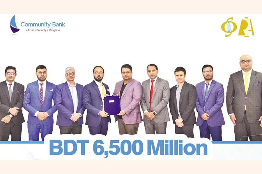 Community Bank Bangladesh PLC has signed syndication agreements with R.A. Spinning Mills Ltd and Outpace Spinning Mills Ltd to arrange Tk 6,500 million through a syndicated financing structure. Under the arrangement, Community Bank Bangladesh, through its structured finance unit of the corporate banking division, will act as the facility arrange. Kimiwa Saddat, Managing Director (current charge) of Community Bank Bangladesh, signed and exchanged the mandate agreements with Razeeb Haider, Managing Director of R.A. Spinning Mills Ltd and Outpace Spinning Mills Ltd, at the bank's head office.