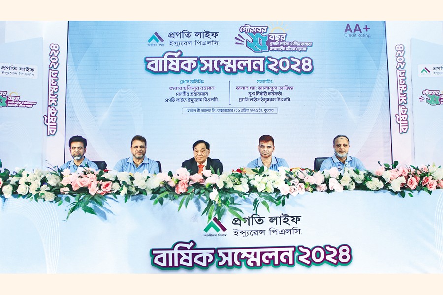 The Annual Conference 2024 of Pragati Life Insurance PLC was held at a hotel in Cox's Bazar recently. Chairman of the company Khalilur Rahman inaugurated the conference as the chief guest while CEO Md. Jalalul Azim presided over the event. At the beginning of the conference, Chairman Khalilur Rahman officially launched the Silver Jubilee celebrations marking the 25th anniversary of Pragati Life Insurance by cutting a cake and unveiling the special logo. Additional Managing Directors Jahangir Hossain, Faruque Mahmud and Md Rafiqul Alam Bhuiyan were present on the occasion.
