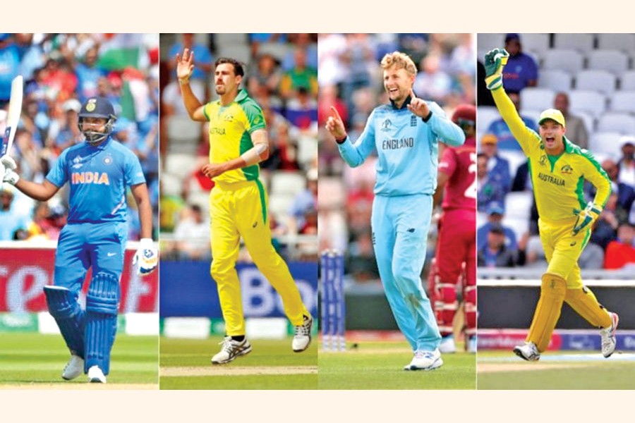 In a Twitter post, ICC shared a collage of Rohit Sharma, Mitchell Starc, Joe Root, and Alex Carrey.