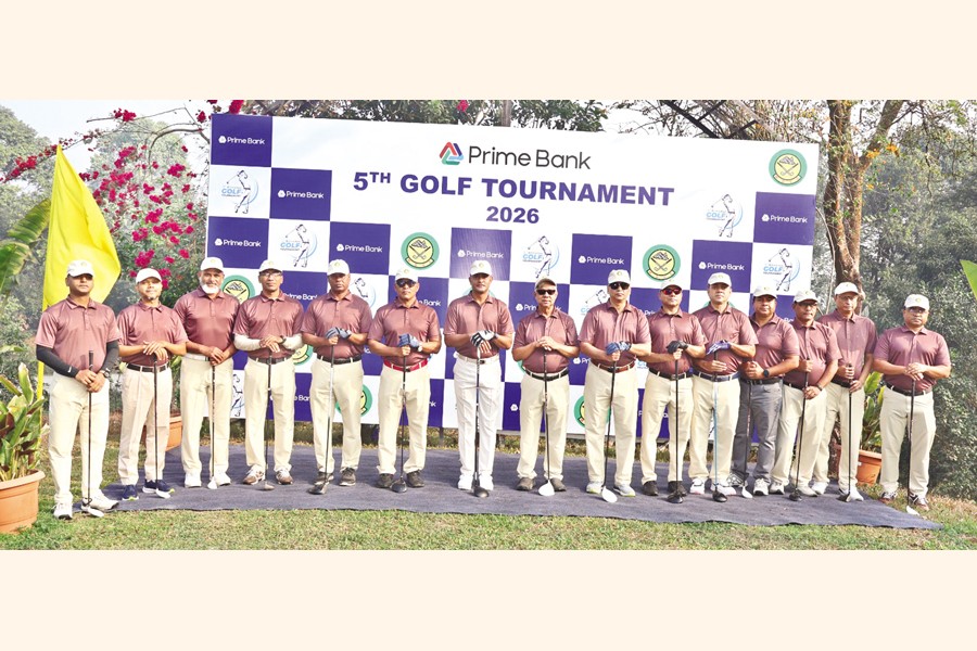 Participants pose after closing of a three-day long 5th Prime Bank Cup Golf Tournament 2026 at the Mainamati Golf and Country Club, Cumilla Cantonment recently. The closing ceremony was attended by Brigadier General Md. Malek Hossain, ndc, psc, Chairman, Handicap and Entertainment Committee; Brigadier General Syed Ashiqur Rahman, SPP, PBGM, nwc, psc, Chairman, Tournament Committee; and Lieutenant Colonel Beig Sabbir Ahmed, psc, Member Secretary. Deputy Managing Director of Prime Bank PLC M. Nazeem A. Choudhury and SEVP & head of distribution network Mamur Ahmed were also present on the occasion