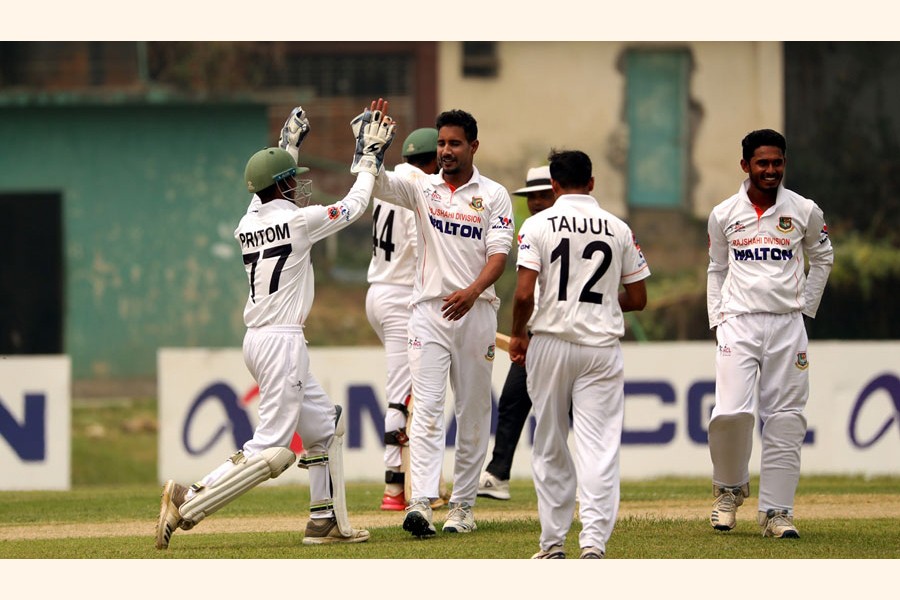 In another match, Rajshahi Division registered their first victory in the ongoing NCL and that too in just two days-preciously in just four sessions as they crushed Barishal Division by an innings and nine runs margin at BKSP ground on Tuesday.