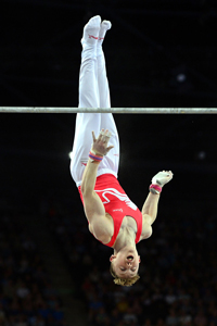 GLASGOW: Nile Wilson of England performs in the Men\'s Horizontal Bar final of the Artistic Gymnastics event during the 2014 Commonwealth Games here Friday. — AFP Photo