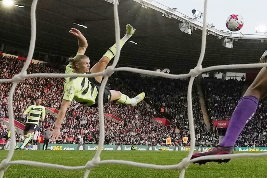 SOUTHAMPTON, England, Apr 09 (Reuters): Erling Haaland netted a brilliant bicycle kick as he scored a brace on his return to Manchester City's starting line-up after injury in a 4-1 Premier League win at bottom side Southampton on Saturday to keep the pressure on leaders Arsenal.