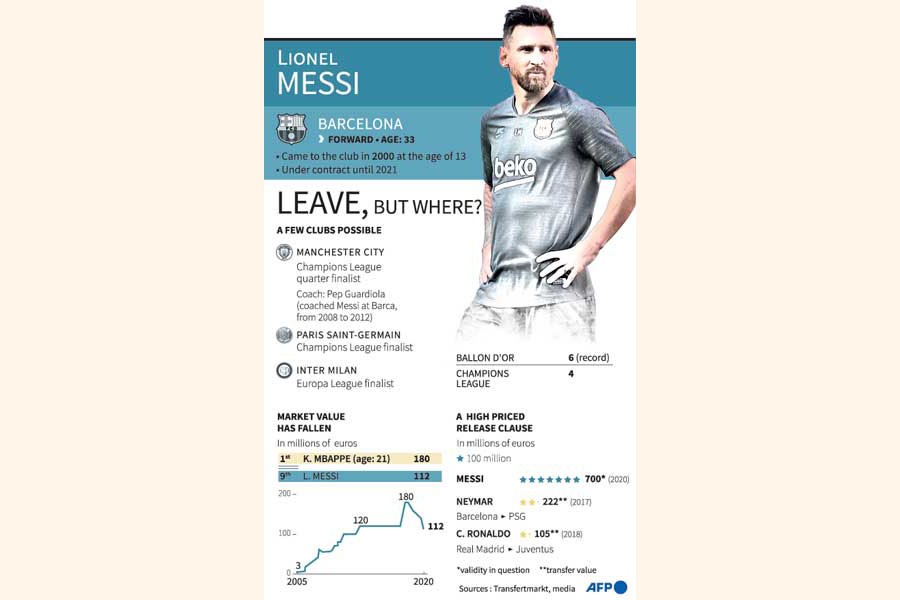 Manchester City, Inter and PSG are the main clubs touted as potential destinations for Messi.
