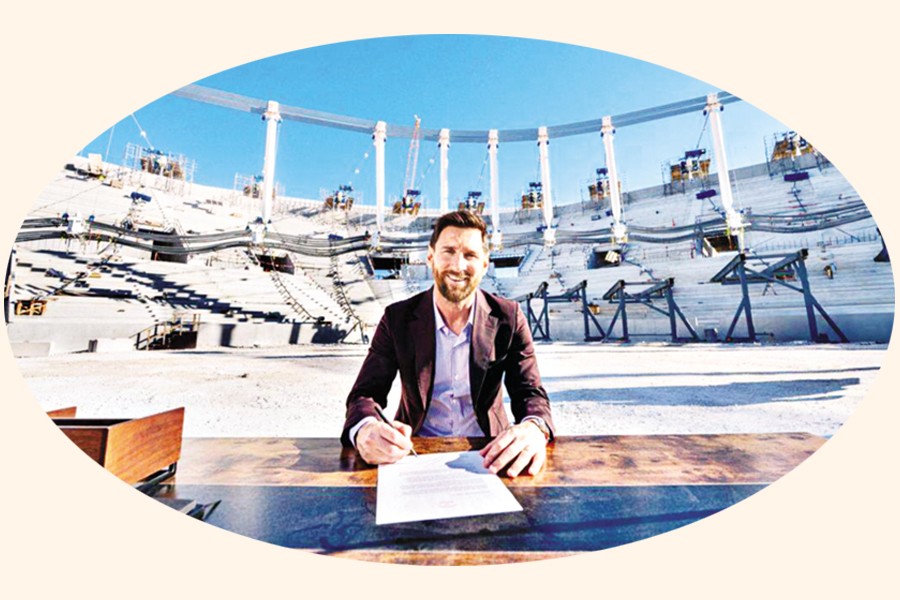 The team announced the move in a social media post, one showing Messi signing the contract inside the new stadium that remains under construction. "HE'S HOME," the team said in the post.
