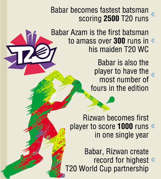 DUBAI, Nov 12 (Agencies): Pakistan is a team that is breaking and creating records every day in this World Cup. Pakistan captain Babar Azam on Thursday broke Virat Kohli's record to become the fastest batsman to score 2500 runs in the T20s during his team's semifinal match against Australia in the ICC Men's T20 World Cup.