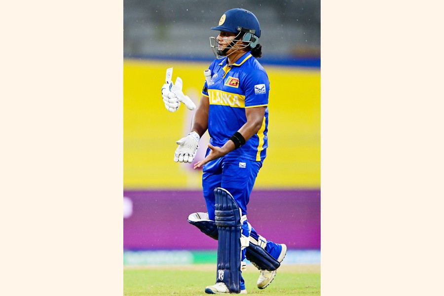 Sri Lanka's captain Chamari Athapaththu gestures after her dismissal during the ICC Women's Cricket World Cup 2025 ODI match between Sri Lanka and South Africa at the R. Premadasa International Cricket Stadium in Colombo on Friday. -- AFP