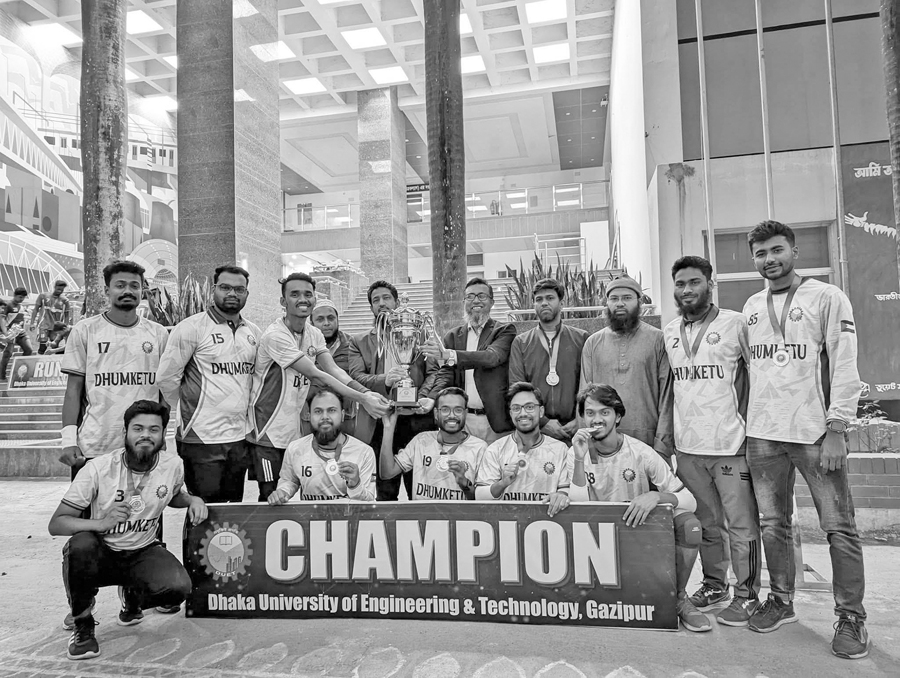 The final match of the Dhaka University of Engineering and Technology (DUET), Gazipur Inter-Hall Volleyball Tournament-2026 has been held on its campus recently. Team Dhumketu of Kazi Nazrul Islam (KNI) Hall defeated Team Gladiators of Bijoy 24 Hall and became champion for the third time in a row. DUET Vice-Chancellor Professor Dr. Mohammad Joynal Abedin, among others, attended the award giving ceremony.