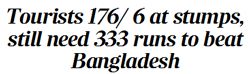 Ireland were 176 for 6 while chasing 509 at stumps at the Sher-e-Bangla Cricket Stadium on Saturday.