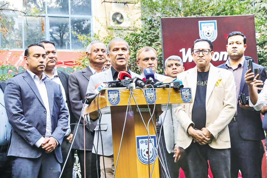 Youth and Sports Adviser Asif Nazrul speaks at a press conference at the Bangladesh Football Federation Bhaban in the city on Monday- FE Photo Story on page 1