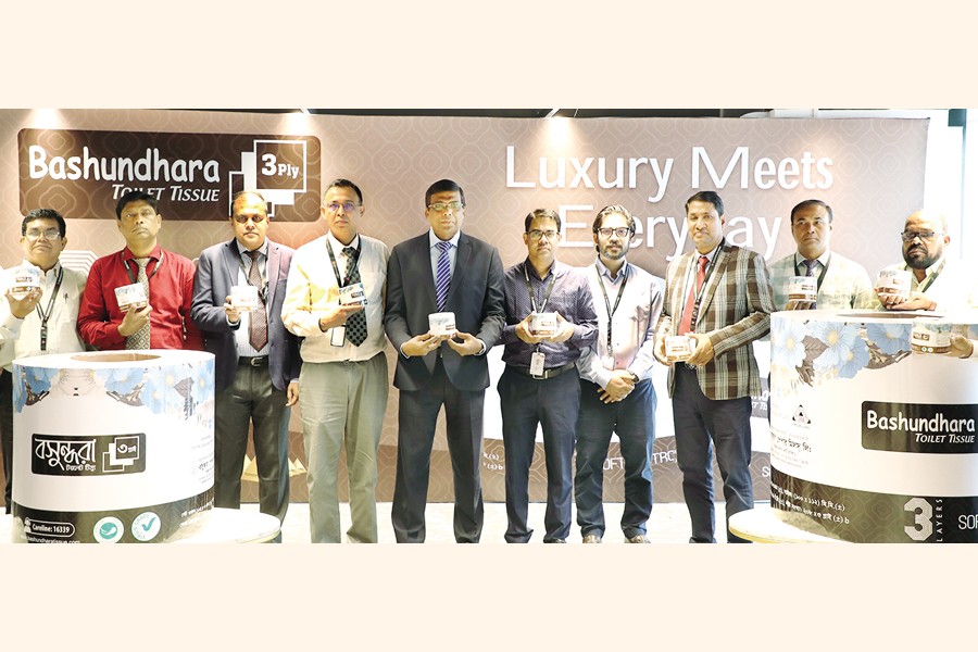 Bashundhara Tissue, a concern of the Bashundhara Group, officially unveiled its latest innovation, '3-ply Bashundhara Toilet Tissue,' at a ceremony held at the Bashundhara Industrial Headquarters (BIHQ) in Dhaka on Wednesday. The newly launched product is designed with three layers for enhanced softness, strength and absorbency. The launching ceremony was attended by senior officials of Bashundhara Group -- Chief Sales Officer (CSO) Mohammad Masudur Rahman, General Manager (Marketing, Sector-C) Mohammad Alauddin and Assistant General Manager (Marketing, Sector-C) Imranul Kabir.