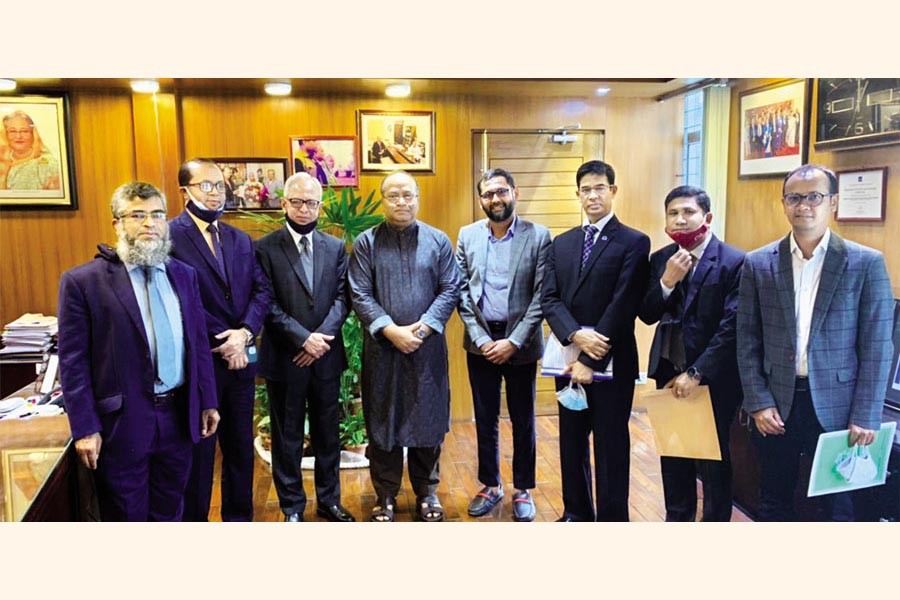 A team comprising Mohammed Monirul Moula, Managing Director & CEO, Islami Bank Bangladesh Limited, Safiul Alam Khan Chowdhury, Managing Director & CEO, Pubali Bank Limited, Tanzim Alamgir, Chief Executive Officer of UCB Investment Limited, and Md. Akhter Hossain, Deputy Managing Director, Shahjalal Islami Bank Limited, and other representatives from respective banks paid a courtesy call on BSEC Chairman Professor Shibli Rubayat-Ul-Islam at the Bangladesh Securities and Exchange Commission office on Wednesday. The UCB Investment Limited, which is the Arranger of the issuance of the perpetual bonds of all the four banks, arranged the visit.