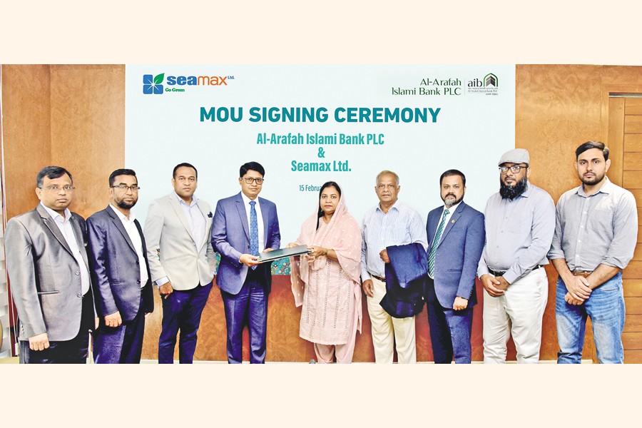Al-Arafah Islami Bank on Sunday signed a memorandum of understanding with Seamax Limited, under which they will provide support to farmers in the production and marketing of crops. S.M. Abu Jafar, the bank's deputy managing director, and Hiron Nahar, chairman of Seamax Limited, signed the agreement at a ceremony held at the bank's head office.