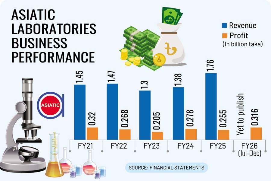 Asiatic Laboratories has posted an impressive 86 per cent year-on-year growth in profit to Tk 164 million in the second quarter of FY26, driven by higher sales amid a stable forex market.
