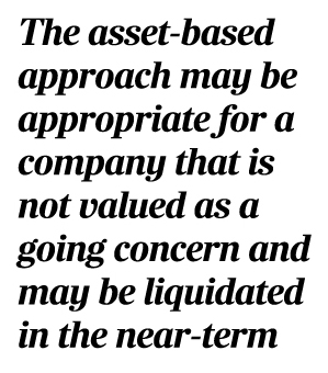 The asset-based approach may be appropriate for a company that is not valued as a going concern and may be liquidated in the near-term.