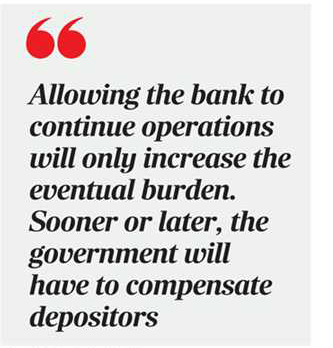 "Allowing the bank to continue operations will only increase the eventual burden. Sooner or later, the government will have to compensate depositors," he said.