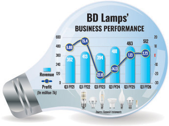 Bangladesh Lamps, widely known as BD Lamps, reported a sharp 142 per cent year-on-year growth in profit to Tk 2.73 million for the January-March quarter of FY26, driven by higher sales and improved cost efficiency.