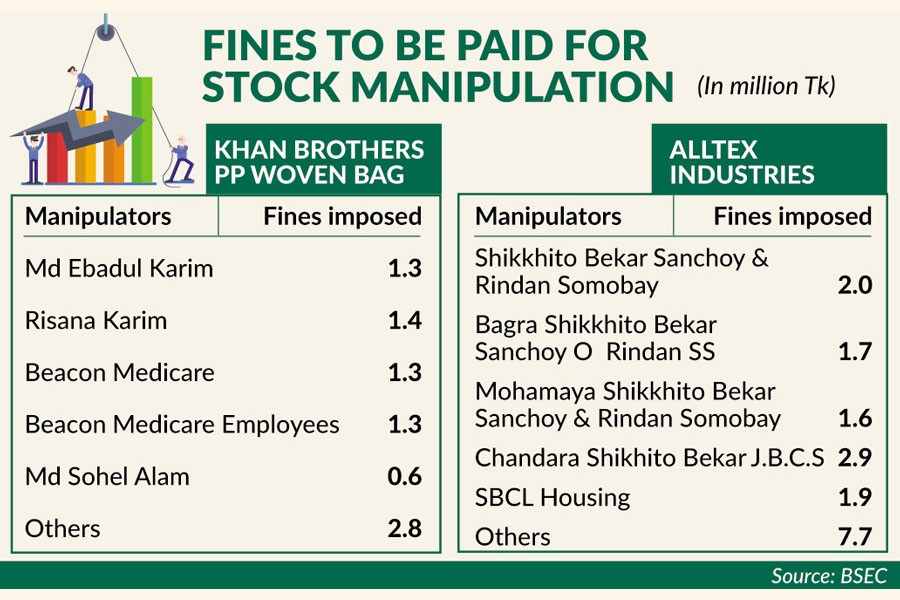 The Bangladesh Securities and Exchange Commission (BSEC) also fined four individuals and 21 companies Tk 17.8 million in total for artificially inflating the stock price of Alltex Industries in 2022.