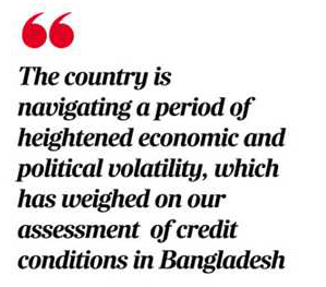 "The country is navigating a period of heightened economic and political volatility, which has weighed on our assessment of credit conditions in Bangladesh," the release says.