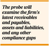 The probe will examine the firm's latest receivables and payables, assets and liabilities, and any other compliance gaps.