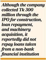 Moreover, although the company collected Tk 300 million through the IPO for construction, loan repayment, and machinery acquisition, it reportedly did not repay loans taken from a non-bank financial institution. Instead, it placed the IPO proceeds in fixed deposits and secured further loans against those funds, prompting legal action to block the money.